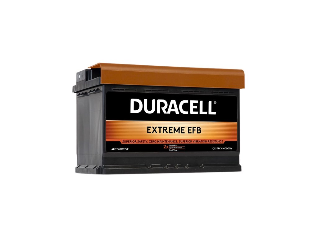Autobaterie řady DURACELL Extreme EFB jsou ideální volba pro všechna běžně vybavená moderní vozidla se systémem Start-Stop a bez systému rekuperace brzdné energie.