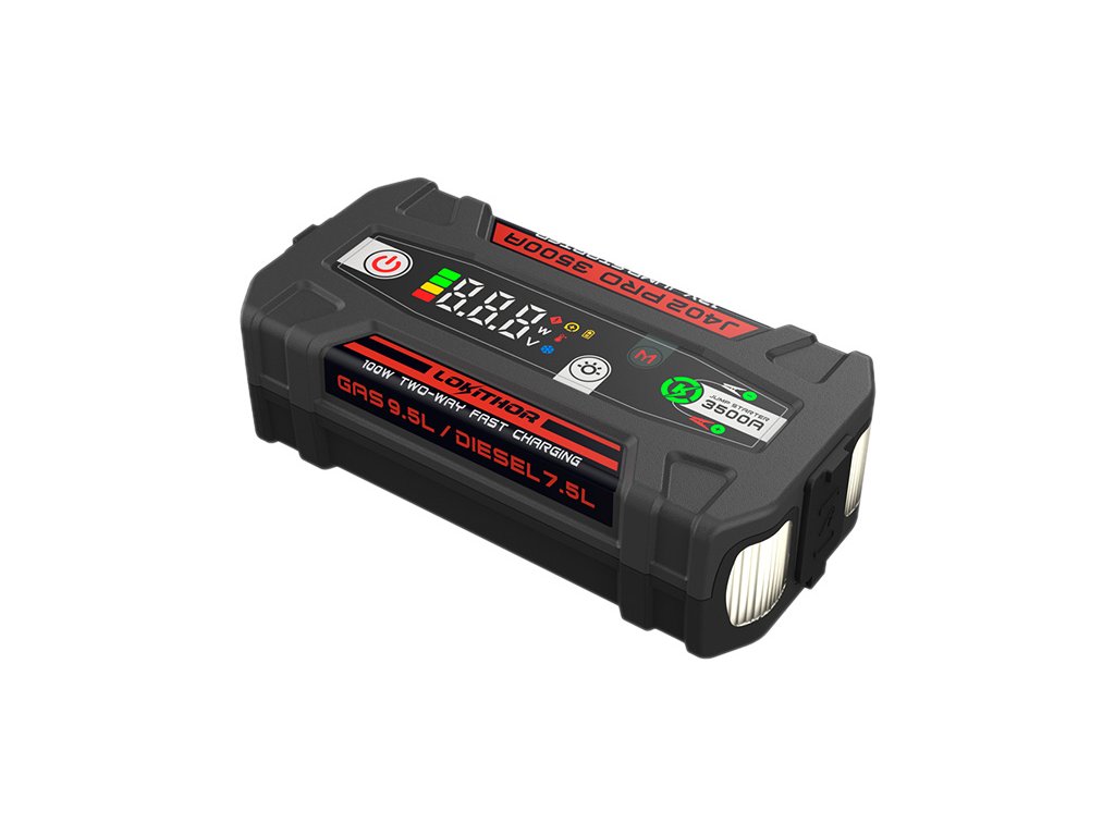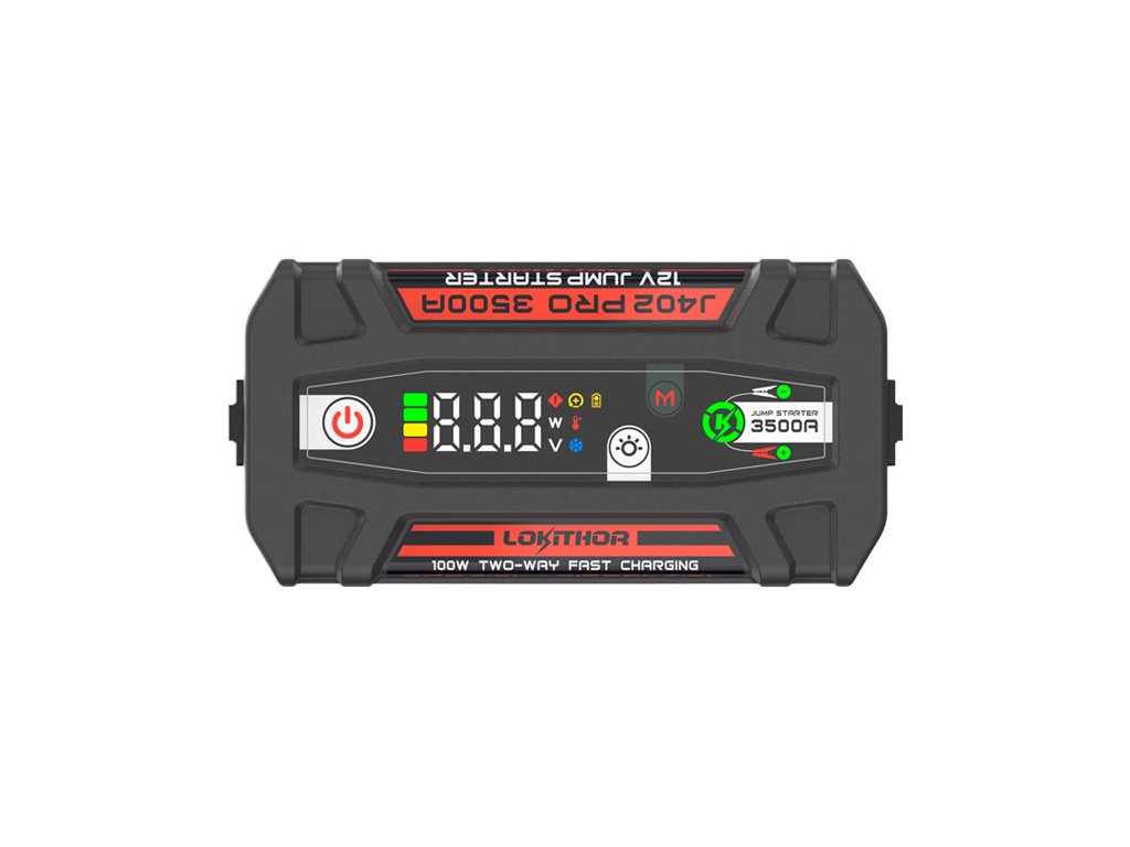 Lokithor J402 PRO je multifunkční startovací zdroj, jeho kompaktní design spojuje funkce boosteru, powerbanky a svítilny. Vestavěná moderní Li-Pol (LiPo) baterie s kapacitou 88,8 Wh (24Ah) poskytuje stabilní výkon, rychlé starty a dlouhou životnost. Výhodou je také výrazně nižší hmotnost pouhých 1.17 kg.
