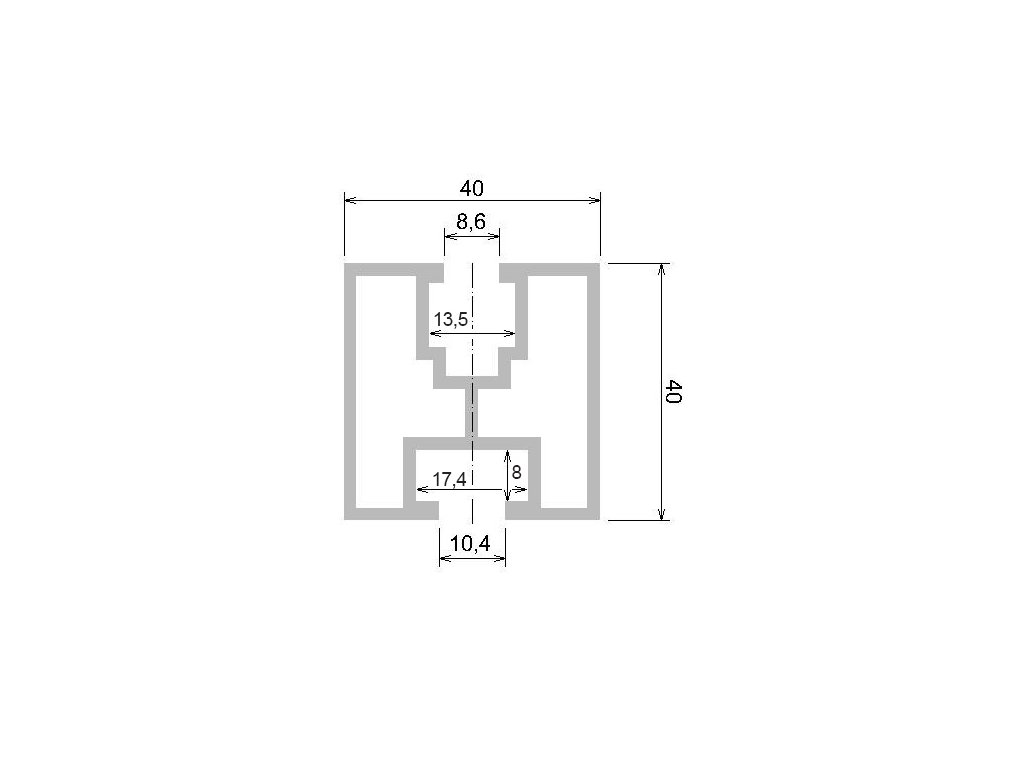Hliníkový profil s rozměry 40mm x 40mm a délce 6600mm. Síla stěny 1,2mm (+/-0,1mm).