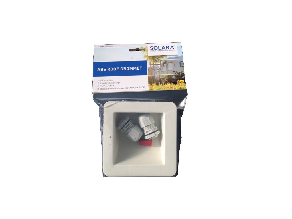 Průchodka Solara nabízí velmi lehkou konstrukci a je odolná UV záření a slouží pro vodotěsný prostup kabelů od solárního panelu střechou karavanu, obytného vozu, lodě apod.