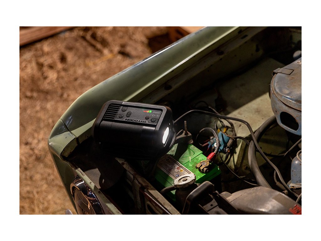 Se špičkovým výkonem 2000 ampérů startuje AX65 bez námahy vše od aut a motocyklů až po SUV a traktory. Poradí si s motory o objemu až 8,0 litrů (benzín) nebo 6,0 litrů (diesel). Svorky s kvalitními kabely umožňují uchycení na kontakty vzdálené od sebe přes 50 cm, což stačí pro všechny běžné baterie.