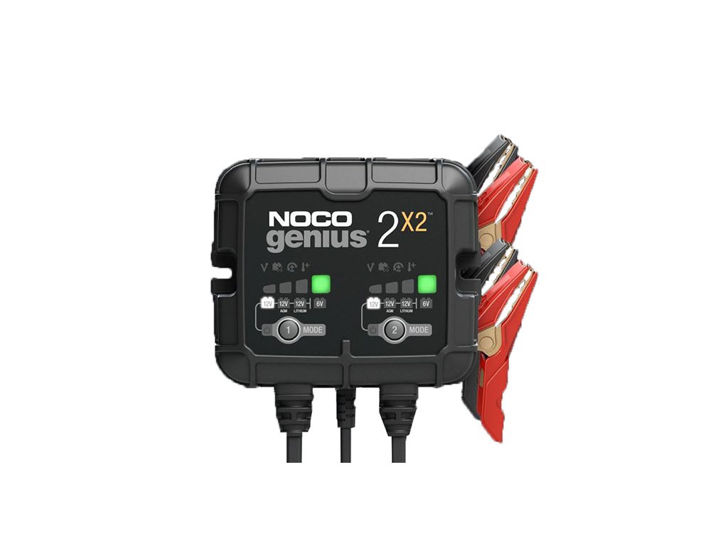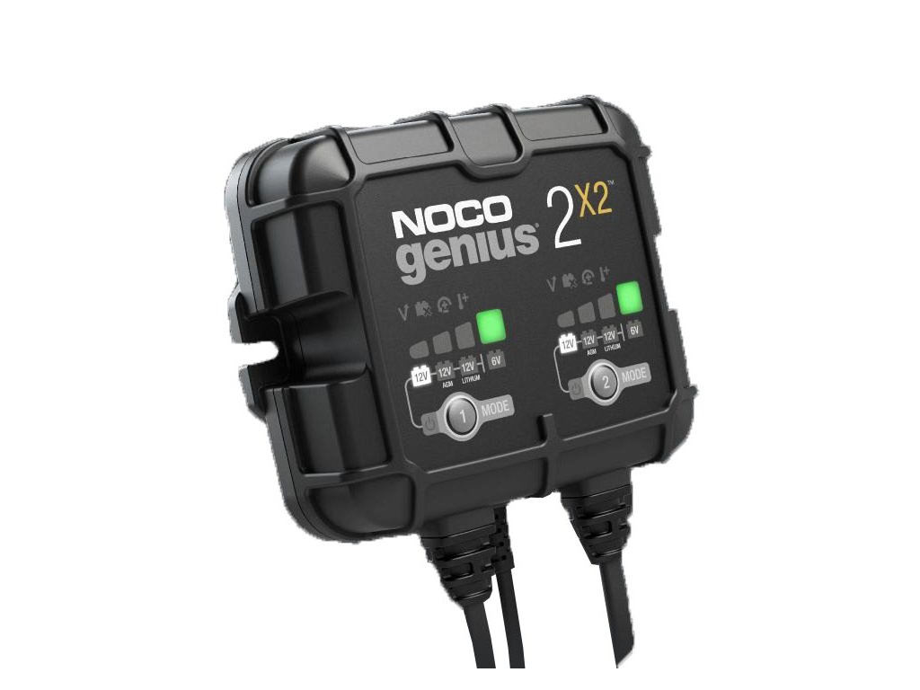 Noco Genius2x2 6V/12V-2A automatická nabíječka. Výrobce NOCO. Nabíječka slouží pro nabíjení olověných kyselinových, bezúdržbových, Super MF, GEL, VRLA, AGM, záložních a Lithium-ion akumulátorů o kapacitě do 40Ah a pro režim udržování akumulátorů všech velikostí.