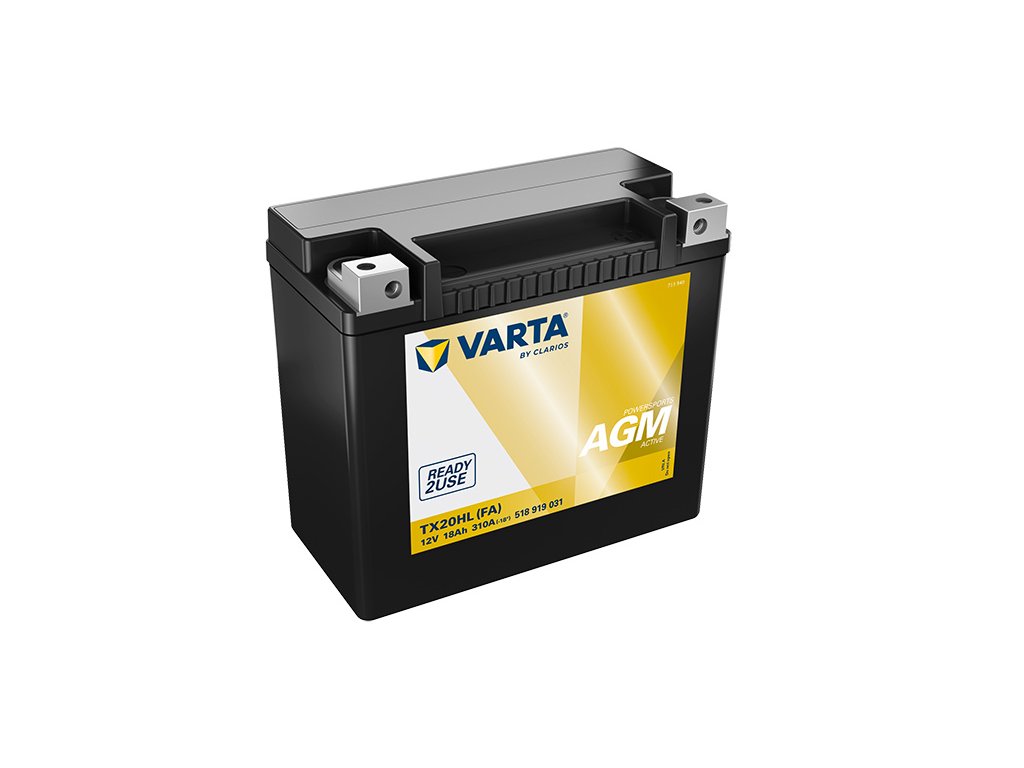 Baterie VARTA® Powersports AGM Active dodají energii, kterou potřebujete – bez ohledu na vozidlo nebo terén. Jsou vyrobeny pro nejmodernější motocykly, skútry, čtyřkolky, užitková terénní vozidla, vodní skútry, sněžné skútry a sekačky na trávu. Tato řada baterií poskytuje výjimečný startovací výkon, spolehlivou dodávku energie a robustní konstrukci odolávající vibracím. Kromě lepšího výkonu při studeném startu a 3krát delší životnosti v porovnání s běžnými bateriemi lze baterie Powersports AGM Active montovat s úhlem instalace až 90 stupňů. To vše díky zprovoznění přímo v továrně (factory activated), kde je baterie přesně nabita, naplněna a trvale utěsněna.