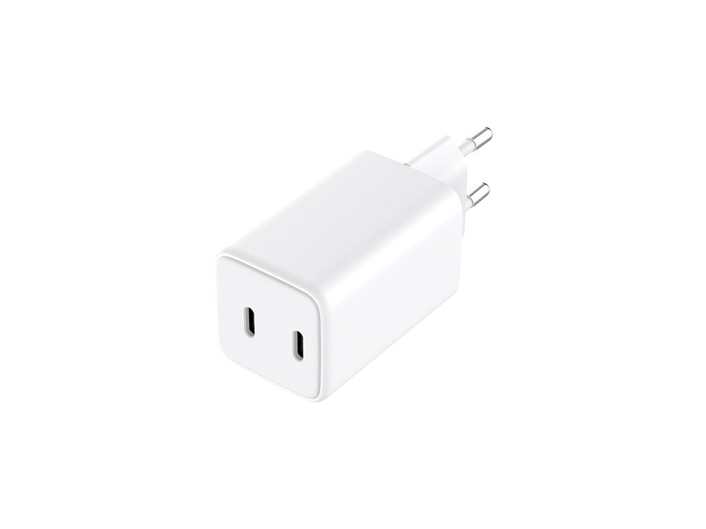 Kompaktní nabíječka se dvěma bleskově rychlými porty USB-C pro nabíjení vašich zařízení. Můžete zvolit použití jednoho portu při plném výkonu 65 W, což bude stačit pro nabití většiny notebooků s konektorem USB-C. Nebo můžete použít oba porty současně, což znamená, že výkon bude rozdělen a lze jej využít například pro současné nabíjení chytrého telefonu a tabletu či netbooku.