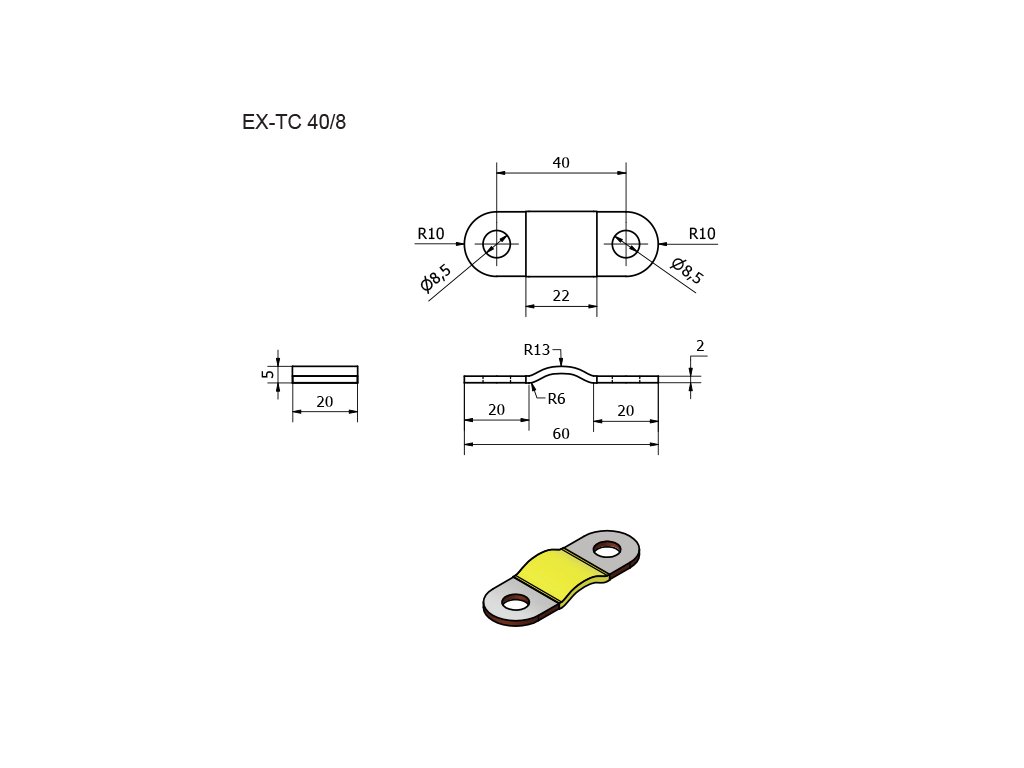 Konektor je složen z vícevrstvého, měděného materiálu.Terminálový konektor je vhodný k propojení následujících článků ELERIX: