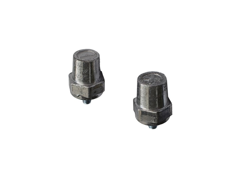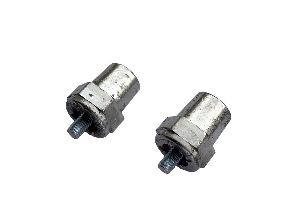 Kovová redukce - závit M6/auto kontakt, pár (1x plus pól 19,5mm a 1x mínus pól 17,9mm). Určeno pro běžné svorky autobaterie.Cena za pár.