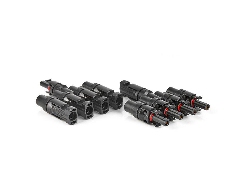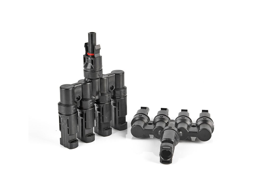 Rozbočovací solární T konektor typu MC4 určený pro paralelní propojení solárních panelů. Je vyroben z vysoce odolného plastu a je opatřen gumovými těsnícími vložkami. Vhodný i pro venkovní aplikace.