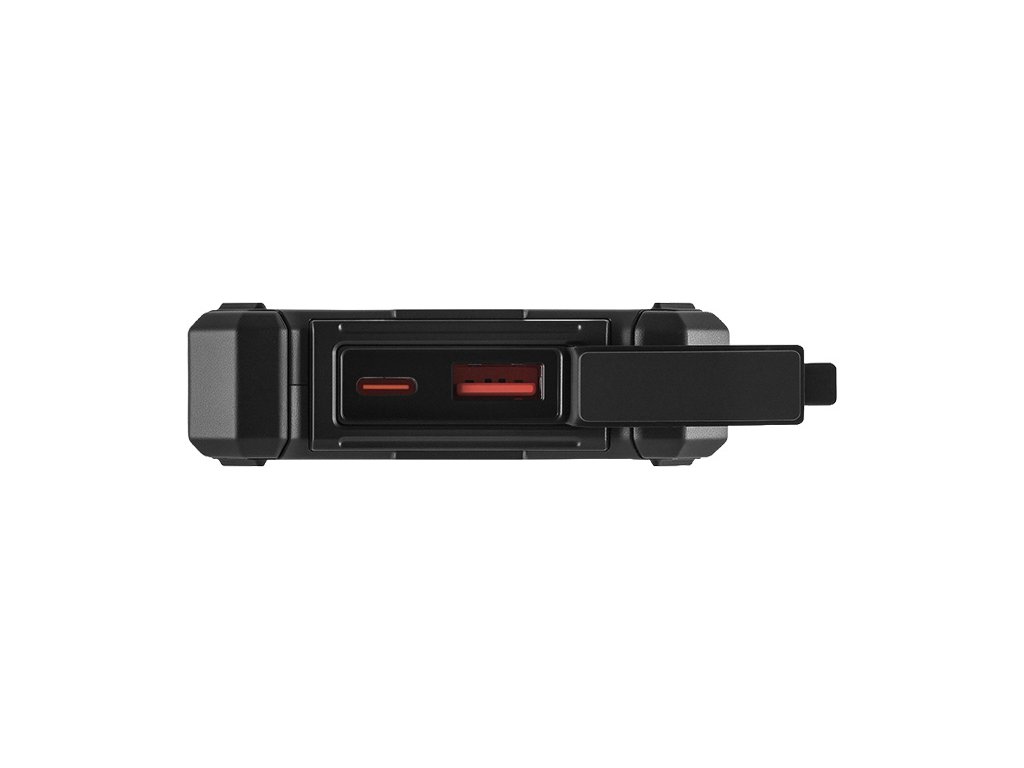 Kapacita 10000mAh (37Wh) znamená energii pro nabíjení mobilního telefonu, GPS a dalších zařízení (porty USB-A a USB-C). Výhodou je možnost nabíjení powerbanky jak z běžné elektrické sítě (port USB-C), tak ze slunečního svitu, které umožňuje vestavěný solární panel (výkon 1.25W). Nejen po setmění přijde vhod výkonná vestavěná LED svítilna (výkon 200 lumenů), zatímco manipulaci a používání usnadňují textilní poutko a kovová karabina (součástí balení).