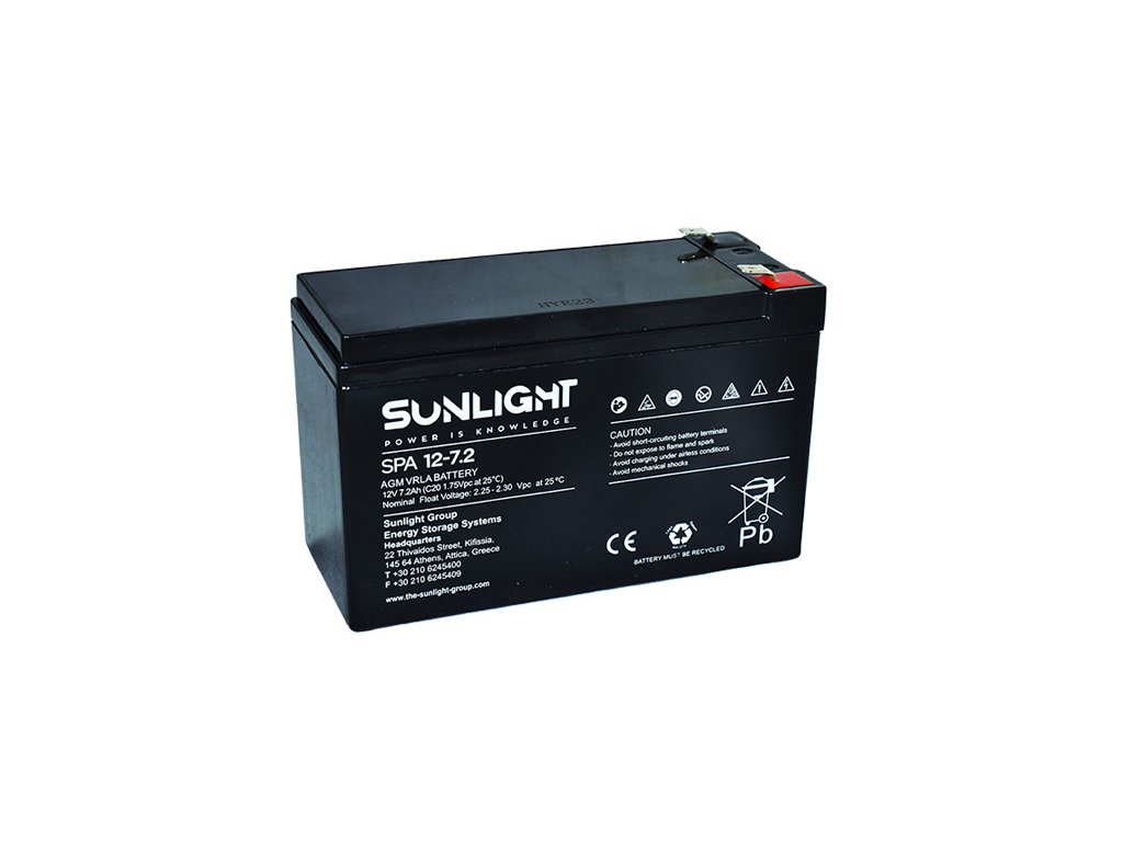 Záložní baterie Sunlight SPA 12-7.2 F2, 12V, 7.2Ah